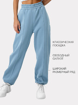 Брюки прямые спортивные из трикотажного полтна футер. По талии притачной пояс на внутренней резинке. Боковые карманы с отрезным бочком. Боковые швы переходят на перед.