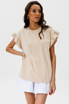 Футболка женская из эластичного хлопкового полотна. Короткий рукав. Круглая горловина. В боковом шве фирменный жаккардовый логотип.