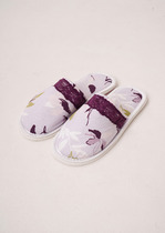 Лёгкие тапочки для дома и отдыха с закрытым носом из хлопкового трикотажного полотна, с нашивкой. Толстая подошва.