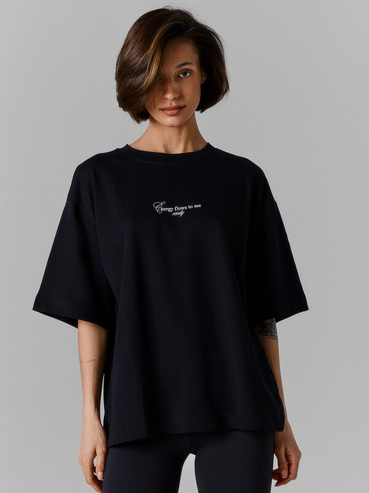 Горловина округлой формы обработана обтачкой из рибаны. Шов втачивания обтачки по спинке закрыт обтачкой из основного полотна. Рукава втачные, корткие. Линия плеча спущена. Нижние срезы футболки и рукавов обработаны швом вподгибку.