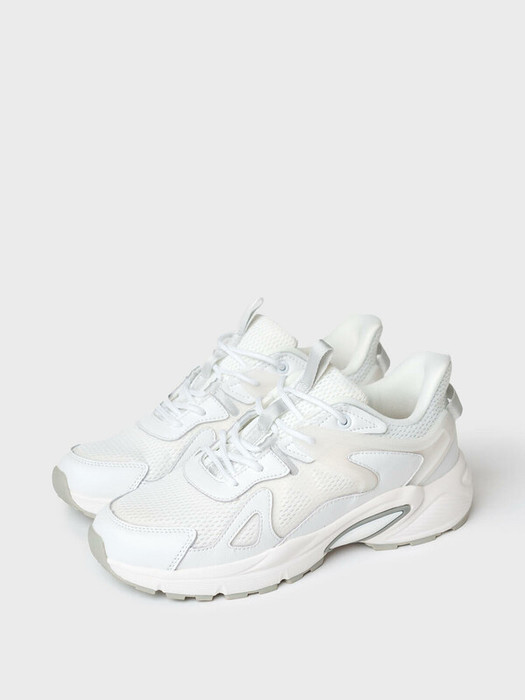 Стильные кроссовки на шнурках женские. Верх обуви выполнен из натуральной кожи и дышащей сетки. Профилированная съемная стелька из натуральной кожи обеспечивает правильную нагрузку на стопу. Текстильная дышащая подкладка обладает повышенной износостойкостью. Подошва из ЭВА очень легкая, а дополнительная ходовая часть из ТПР придает подошве долговечность. Данная модель идеально подходит для длительных прогулок. Бело-серая гамма впишется в любой образ