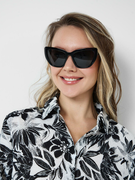 Солнцезащитные очки формы "кошачий глаз" для женщин. Такая оправа подходит под любой овал лица. Солнцезащитные очки с фильтром Cat3 и поляризацией.  Тёмные линзы имеют защиту UV400, которая отражает 100% ультрафиолетовых лучей с длиной волны менее 400 нанометров, эффективно блокируя все ультрафиолетовые лучи при солнечном свете. Высококачественная пластиковая конструкция: легкая, небьющаяся и гибкая. Ширина оправы - 145 мм, длина дужек - 145 мм. Обхват головы 54-56 см. Небьющиеся линзы из триацетата целлюлозы устойчивы к царапинам.  Высококачественные поляризованные линзы обеспечивают 100% защиту от UVA/ UVB лучей, защищая глаза и нежную кожу вокруг глаз от вредных солнечных лучей. Поляризационные фильтры на очках поглощают блики, отражаемые от горизонтальных поверхностей, что помогает повысить четкость зрения и избежать напряжения глаз. Только при просмотре в линзах с поляризацией видна машина на дороге на тест-картинке, вложенной в чехол.  Небьющиеся линзы из триацетата целлюлозы устойчивы к царапинам. Такие очки эффективны для защиты глаз в тропиках, у моря и в горах. В комплекте: фирменный текстильный чехол из неопрена с магнитной застежкой,брендированная  тряпочка из микрофибры для ухода за изделием, тест-картинка с машиной.  Очки транспортируются в картонной коробке.