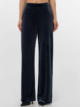 Свободные женские брюки со стрелкой и боковыми карманами из плотного гладкого трикотажа интерлок. Застежка на кнопку. Низ обработан плоскими швами.