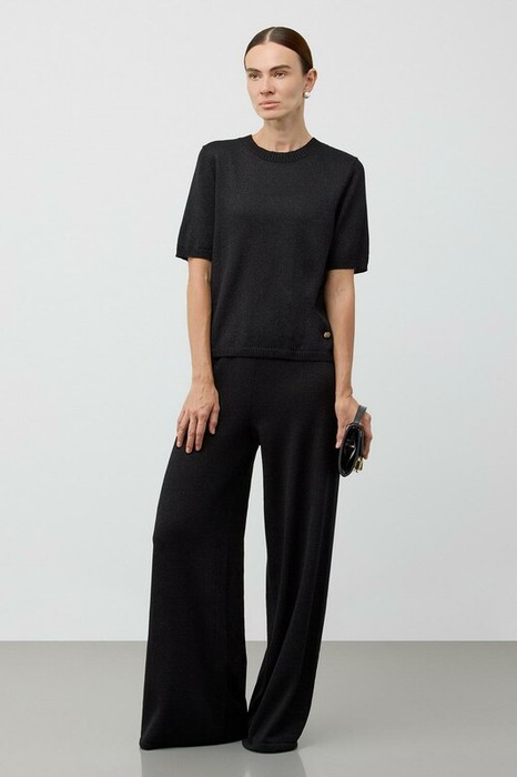 Благодаря высокому уровню вискозы джемпер приятно охлаждает кожу и создает ощущение мягкости. Уникальное добавление метанита придает ткани изысканный мерцающий эффект, который тонко подчеркивает вашу индивидуальность. Этот джемпер идеально подходит для создания как повседневных, так и вечерних образов.