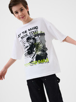 Удобная футболка для мальчика из мягкого трикотажа с эластичной горловиной обеспечивает комфортную посадку. Оригинальный принт на передней части привлекает внимание, а рукава реглан с контрастными кантами добавляют модели стильный акцент.