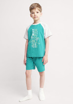 Комплект хлопковой пижамы из футболки и брюк. Футболка свободного кроя дополнена эластичной горловиной и стильным принтом. Брюки среднего объема, эластичный пояс обеспечит комфорт и идеальную посадку. По низу брюк эластичные манжеты.