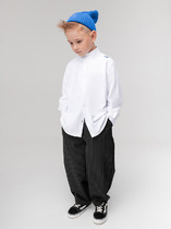 Трикотажные брюки для мальчика из петельчатого футера. Эластичный пояс на резинке регулируется по ширине с помощью шнурка. По бокам два удобных кармана. Внизу эластичные манжеты на резинке.