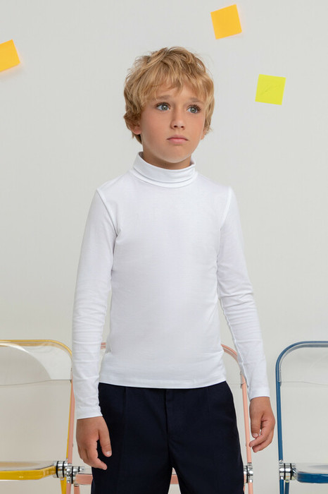 Детская водолазка с длинным рукавом и воротником с отворотом из эластичного супрема. Мягкий материал изделия приятен к телу и хорошо тянется. Все трикотажные изделия производятся в соответствии с нормами швейцарского сертификата ЭкоТекс.