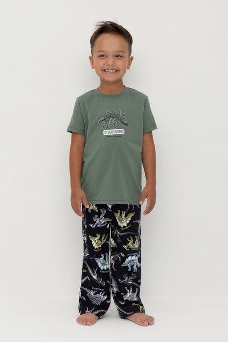 08.04 Crockid пижама дет К 1599/зеленый мох,цветные динозавры