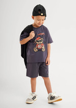 Джинсовые шорты для мальчика с потертостями на резинке со шнурком. По бокам и сзади карманы. На поясе нашивка из эко кожи.