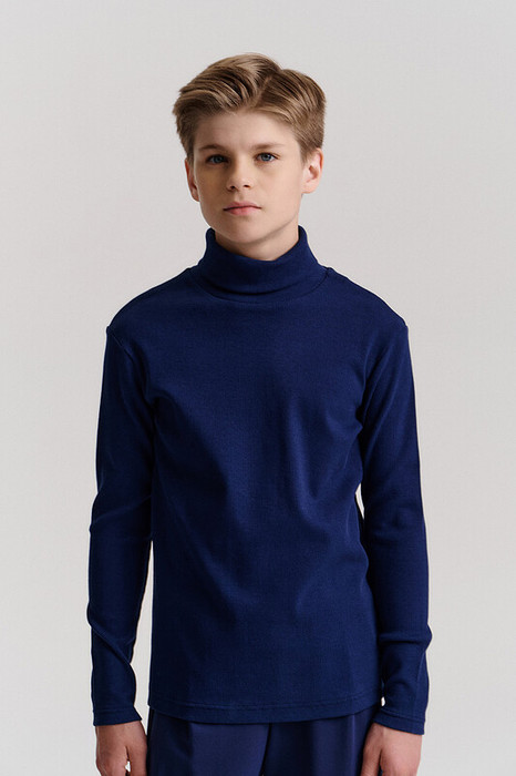 Водолазка из модной ткани в рубчик для мальчика. В составе ткани преобладает хлопок — модель мягкая, тактильно приятная и пропускает воздух. Эластан помогает сохранять форму. Воротник-стойка позволяет удобно надевать и снимать изделие, при этом он отлично сохраняет форму. Водолазку лаконичного дизайна легко сочетать с различными брюками, пиджаками, жилетами, это идеальная база гардероба. Стильный и практичный вариант школьной одежды для мальчиков.