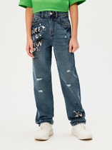 Синие джинсы выполнены из эластичного денима. Внутренняя сторона джинс из мягкого флиса, обеспечит тепло и комфорт на целый день. Есть дополнительная фиксация талии при помощи внутренней резинки. Изделие дополнено высококачественной металлической фурнитурой с логотипом бренда.