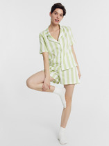 Халат женский из трикотажного полотна «кулирка» с набивным рисунком, прямого силуэта, с короткими втачными рукавами, горловиной V- образной формы, карманами в боковых швах и центральной бортовой застежкой на тесьму «молния». Полочка – с двумя небольшими двойными кокетками, выполненными по косой линии. Горловина переда, входы в карманы окантованы контрастным материалом.