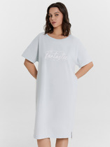 Сорочка женская из трикотажного полотна «кулирка» с набивным рисунком, расширенная книзу, без рукавов, с расширенной, углубленной горловиной овальной формы и притачной кокеткой по переду. Срезы пройм и горловины, а также шов притачивания кокетки, обработаны фасонной эластичной тесьмой с кружевным краем. Низ изделия обработан узкой обметочной строчкой.