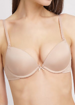 Бюстгальтер классической формы с формованной чашкой с гелевым Push-up. Детали изделия выполнены из эластичного полотна. Бретели эластичные, съемные. Центральная деталь декорирована бантиком из атласной ленты.