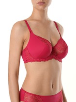 Бюстгальтер классической формы с формованной чашкой с гелевым Push-up. Детали изделия выполнены из эластичного кружева. Бретели эластичные, съемные. Центральная деталь декорирована бантиком из атласной ленты.