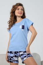 Платье для дома из хлопкового трикотажного полотна. Округлая горловина с обтачкой. По низу рукава -тесьма мережка ,по низу изделия разреы. По переду принт.