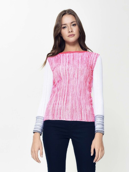 Ультрамодный джемпер облегающего силуэта выполнен из итальянской пряжи с высоким содержанием хлопка. Оригинальное плетение с небольшими утолщениями придает джемперу изюминку и прекрасно облегает фигуру. Ваш образ не останется без внимания: ярким весенним акцентом являются рукава, низ которых связан контрастными полосами. Джемпер легкий, мягкий и тактильно приятный, поэтому он идеально дополнит ваш весенний гардероб.