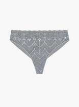 Облегающие стриги серого цвета из полиамида с эластаном и хлопковой ластовицей, обеспечивающие комфорт и идеальную посадку. Передняя часть декорирована кружевом, задняя выполнена по бесшовной технологии.