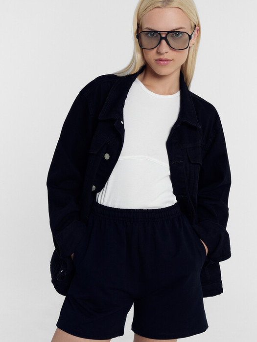 Шорты прямые свободные, длиной выше колен.