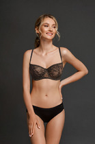 "Бюстгальтер с формованными чашками balconette с небольшим push-up во всех размерах, на каркасах и с боковыми корсетными вставками, выполнен из нежного полотна в рубчик. Элегантное кружево по верхнему срезу чашек, бантик и подвеска с наименованием бренда украшают изделие. Регулируемые бретели  не отстегиваются. Застежка на 2 крючка и 3 ряда петель.