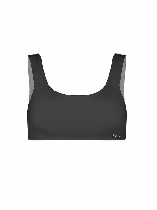 Бюстгальтер-топ из эластичного рибового полотна в широкий вертикальный рубчик с мягким подкладом и  съемными вкладышами.  Без каркасов и боковых корсетных вставок. Бретели широкие, не регулируемые. Брендированная лента под грудью.