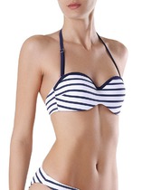 Слитный купальник на подкладе из эластичного полотна с мягкой формованной чашкой soft bra. Мягкая чашка с формованными съемными вкладышами. Без каркасов и без боковых корсетных вставок.Спереди декоративная металлическая вставка. Бретели не съемные и не регулируемые. Без застежки. Тонкие резинки, подгиб и плоский шов по срезу ножек