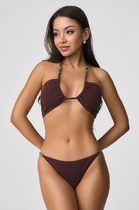 Раздельный купальник из эластичного полотна с чашкой padded triangle . Бюстгальтер на формованной чашке с push-up во всех размерах. На каркасах , с боковыми корсетными вставками. Спереди декоративное переплетение из ткани купальника.Бретели регулируемые, не съемные, с декоративными рюшами из ткани купальника. Пластиковая застежка. Плавки на подкладе с завышенной талией. По бокам регулируемые завязки из ткани купальника. Тонкая резинка, подгиб и плоский шов по линии талии и срезу ножек.