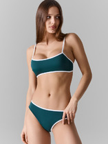 Раздельный купальник эффектного фиолетового цвета с золотой нитью, создающей мерцание, состоит из бюстгальтера и плавок. Бюстгальтер - бандо с мягкой чашкой без каркасов, с боковыми корсетными вставкми и съемным вкладышем. Бретель завязывается на шее и отстегивается. На спинке пластиковая застежка. Плавки на подкладе, с завышенной линией талии и высоким вырезом ножек. На задней части плавок декоративное кольцо, создающее объем и обеспечивающее удобную посадку.