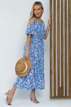 Трикотажное платье в полоску из длинноволокнистого гребенного хлопка. Спущенное плечо придает изделию свободный силуэт.