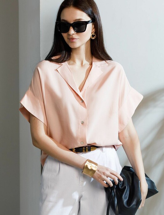 Совместные покупки Тюмень Женская одежда Блузки, рубашки — 21.04 Vilatte Блузка с коротким рукавом из вискозы с лиоцеллом D29.347 пудровый