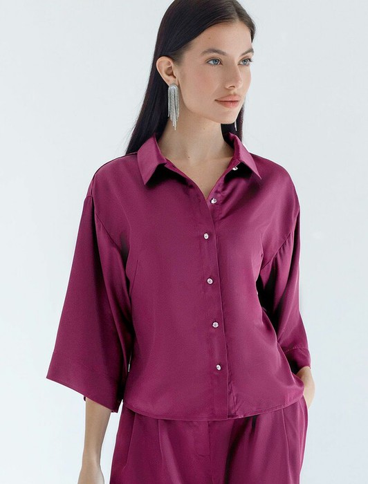 Элегантная блузка черного цвета на пуговицах выполнена из плотного струящегося сатина, который мягко ложится по фигуре и создает эффектную посадку. Отложной воротник придает образу женственную и изящную нотку. Материал отличается дышащей структурой, благодаря чему комфорт сохраняется даже в течение всего дня. Широкие рукава обеспечивают свободу движений и подходят для полных рук, делая блузку универсальной для разных типов фигур, в том числе для больших размеров. Красивая гладкая фактура материала подчеркивает утонченность изделия, добавляя легкое сияние к любому образу. Благодаря продуманному крою эта рубашка смотрится стильно как в повседневной жизни, так и на особых мероприятиях. Ткань практична, она приятна на ощупь, легко ухаживается и долго сохраняет первоначальный вид даже после многократных стирок и активной носки.