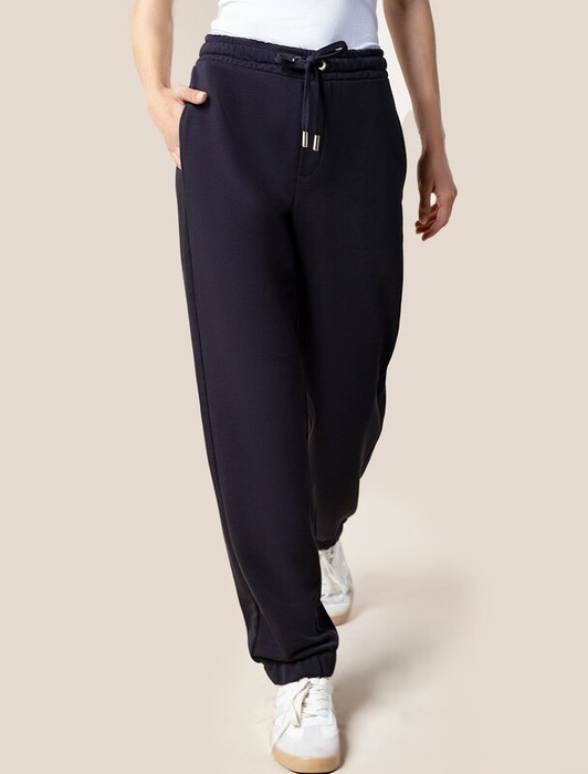Брюки выполнены из премиального футера трехнитки без начеса. Модель дополнена эластичным поясом на резинке и хлопковым шнурком с золотистой фурнитурой. По бокам два кармана. Наличие эластана в составе гарантирует формоустойчивость и износостойкость изделия. Изделие сочетается в костюме с худи D49.051