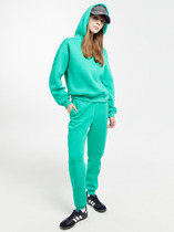 Брюки выполнены из премиального футера трехнитки без начеса. Модель дополнена эластичным поясом на резинке и хлопковым шнурком с золотистой фурнитурой. По бокам два кармана. Наличие эластана в составе гарантирует формоустойчивость и износостойкость изделия. Изделие сочетается в костюме с худи D49.051