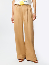 Брюки выполнены из хлопкового твила. Изделие дополнено двумя вариантами шлёвок, что позволяет использовать ремни разной ширины. Модель имеет два боковых и один задний карман. Защипы у пояса и стрелки вдоль брючины визуально вытягивают силуэт и подчеркивают талию. Благодаря наличию эластана в составе изделие сохранит свой безупречный внешний вид в течение долгого времени. Обладает высокой воздухопроницаемостью, в брюках будет комфортно даже в жаркое время года.