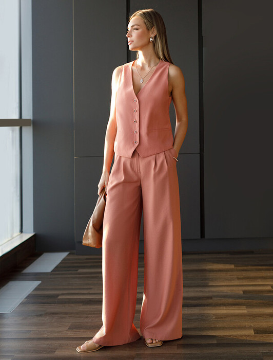 Совместные покупки Тюмень Женская одежда Брюки — 09.04 Vilatte Брюки-палаццо из плотного лиоцелла D24.267 дымчато-коралловый