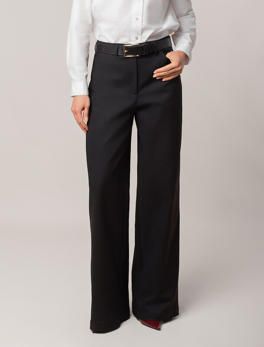 Брюки-трубы выполнены из плотной хлопковой эластичной ткани с добавлением нейлона. Любимая классика делового стиля, которая должна быть в любом гардеробе, так как такая вещь практична и многофункциональна. Для особого случая на важной встрече в паре с блузкой или для офисного дресс-кода с топом и жакетом. В повседневной жизни с более неформальным верхом и обувью на высоком или низком каблуке.