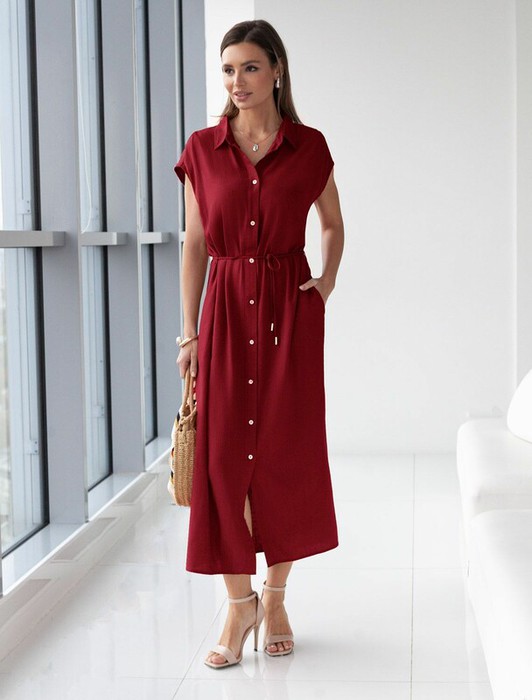 Совместные покупки Тюмень Женская одежда Платья — 21.04 Vilatte Длинное платье-рубашка с поясом и разрезами изо льна с вискозой D2