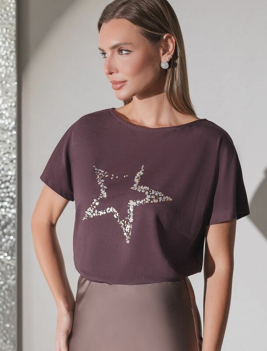 Совместные покупки Тюмень Женская одежда Футболки — 21.04 Vilatte Футболка D49.133 бургунди_stars