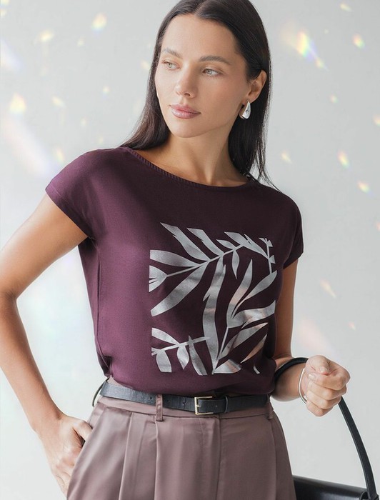 Совместные покупки Тюмень Женская одежда Футболки — 09.04 Vilatte Футболка D49.134 бургунди_листики