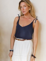Топ с V-вырезом на регулируемых бретелях-завязках из фактурного 100% хлопка флам