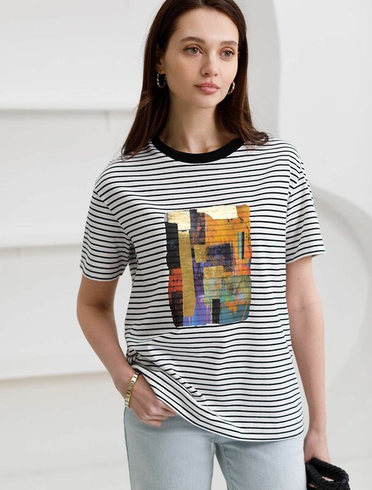 Совместные покупки Тюмень Женская одежда Футболки — 21.04 Vilatte Футболка D49.145 белый-черный_абстракция
