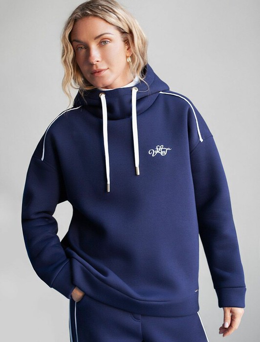 Уютное худи темно-синего цвета с цельнокроенным капюшоном и спущенной линией плеча создано для комфорта в холодную погоду. Модель выполнена из премиального футера трехнитки с мягким начесом, что обеспечивает дополнительное тепло и приятные ощущения при носке. Глубокий капюшон дополнен шнуром для регулировки объема, что обеспечивает отличную защиту от ветра и холода, а серебристая фурнитура добавляет стильный акцент к современному худи. Элементы дизайна — минималистичная вышивка с логотипом бренда и тонкие онтрастные лампасы — делают худи более выразительным без перегруженности деталями, сохраняя эстетичность и современный вид. Эластичные манжеты на рукавах обеспечивают дополнительную защиту от продувания, способствуя сохранению тепла внутри. Натуральный хлопок гарантирует дышащий эффект, позволяя сохранять оптимальный микроклимат тела даже при длительном ношении. Благодаря эластану в составе повседневное худи подходит для активного отдыха, вы будете чувствовать себя свободно в любой ситуации. Представлены бол