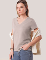 09.04 Vilatte Футболка из премиального хлопка с V-образным вырезом D49.109 кофе