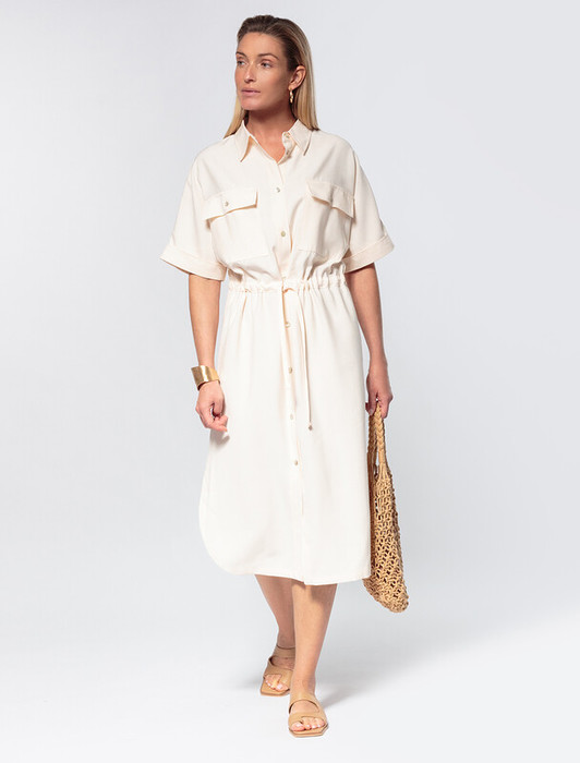 Совместные покупки Тюмень Женская одежда Платья — 09.04 Vilatte Платье-рубашка из плотного лиоцелла D22.209 кокосово-молочный