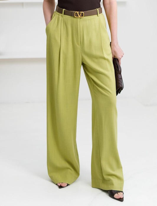 Свободные брюки палаццо салатового цвета изо льна с вискозой, плотностью 200 Г/м2 — выбор, который легко выделит в любой обстановке. Свободные длинные брюки с высокой посадкой создают идеальный силуэт, визуально вытягивают и стройнят фигуру. Натуральный состав ткани обладает высокой воздухопроницаемостью, хорошо драпируется и мягко прилегает к фигуре, создавая струящиеся складки. Мягкая эластичная резинка, встроенная в пояс брюк, обеспечивает идеальную посадку по фигуре, не сдавливая талию и гарантируя максимальный комфорт при движении. В повседневных брюках будет очень комфортно, благодаря правильной регуляции температуры тела. Брюки подходят на маленький и высокий рост, а так же на любую фигуру, позволяя подчеркнуть достоинства и скрыть возможные недостатки. Летние льняные брюки отлично сочетаются с монохромным верхом для вытягивания силуэта, с ними можно создавать эффектные наряды как на выход, так и для ежедневных рабочих дел или простых прогулок, от делового шика до повседневного кэжуал.