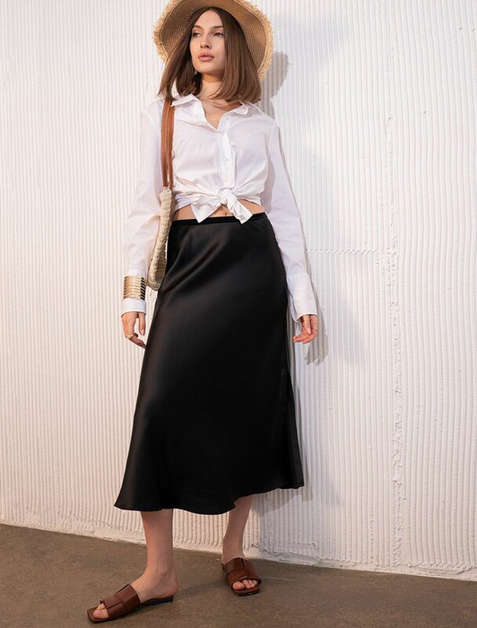 Совместные покупки Тюмень Женская одежда Юбки — 09.04 Vilatte Юбка из плотного полуматового сатина, скроенная по косой D26.461