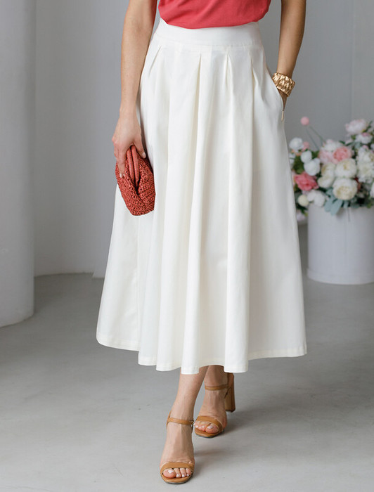 Женская юбка длины миди в складку расклешенного силуэта из хлопкового твила. Модель имеет застёжку на молнию. Визуально подчеркивает талию и бедра, подходит как для повседневного гардероба, так и для особого случая. Натуральный материал ткани  обеспечивает высокий уровень комфорта, отличную гигроскопичность и воздухопроницаемость. Эластан в составе изделия минимизрует деформацию модели и продлевает срок носки.