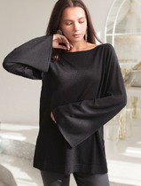 Двухцветный свитер в контрастном цветовом решении. Модель прямого силуэта, рукава расширенные со спущенным плечом, высокий воротник-стойка.