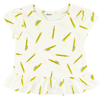 Стильная футболка из трикотажного полотна в трендовую набивку дополнена трендовым минималистичным принтом. Создавай стильные яркие образы, сочетая модель с юбкой или брюками из новой коллекции!